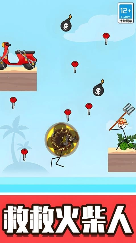 玩家的任务就是解救火柴人,小心躲避各种机关和陷进,轻松的进行闯关。