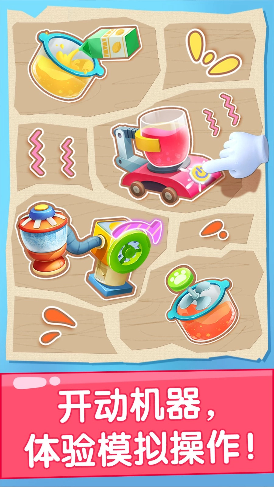 孩子制作果汁的时候可以找到榨汁机等工具,丰富的游戏道具可以任选;