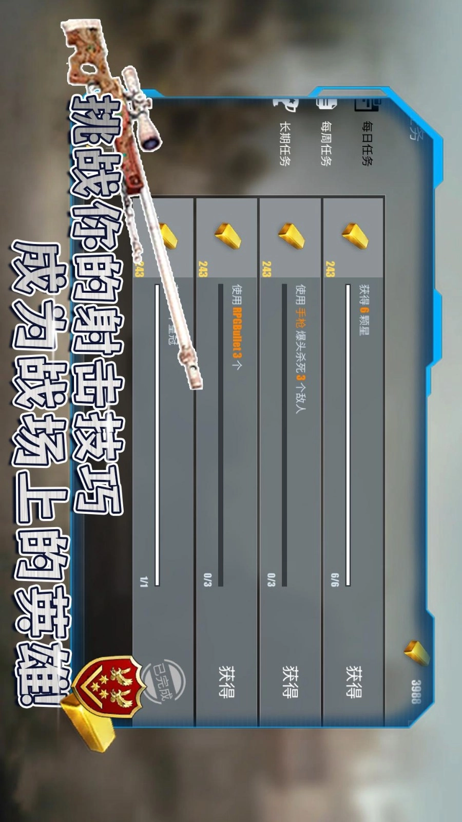 1. 提升你在战斗中的射击水平,完成一系列挑战,与我们一起闯关。
