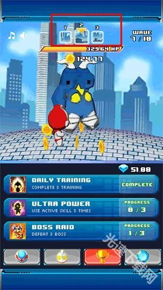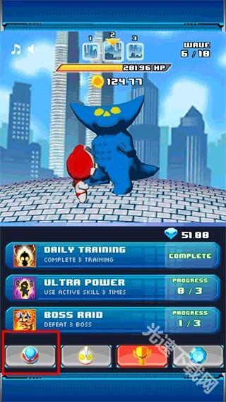 3、左下角的圆形图标就是奥特曼的技能选项,点击一下奥特曼就会进化。
