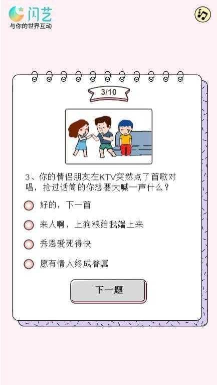 2、通过测试游戏来看看自己作为单身狗的段位,你有哪些应对秀恩爱情侣的反击办法呢?
