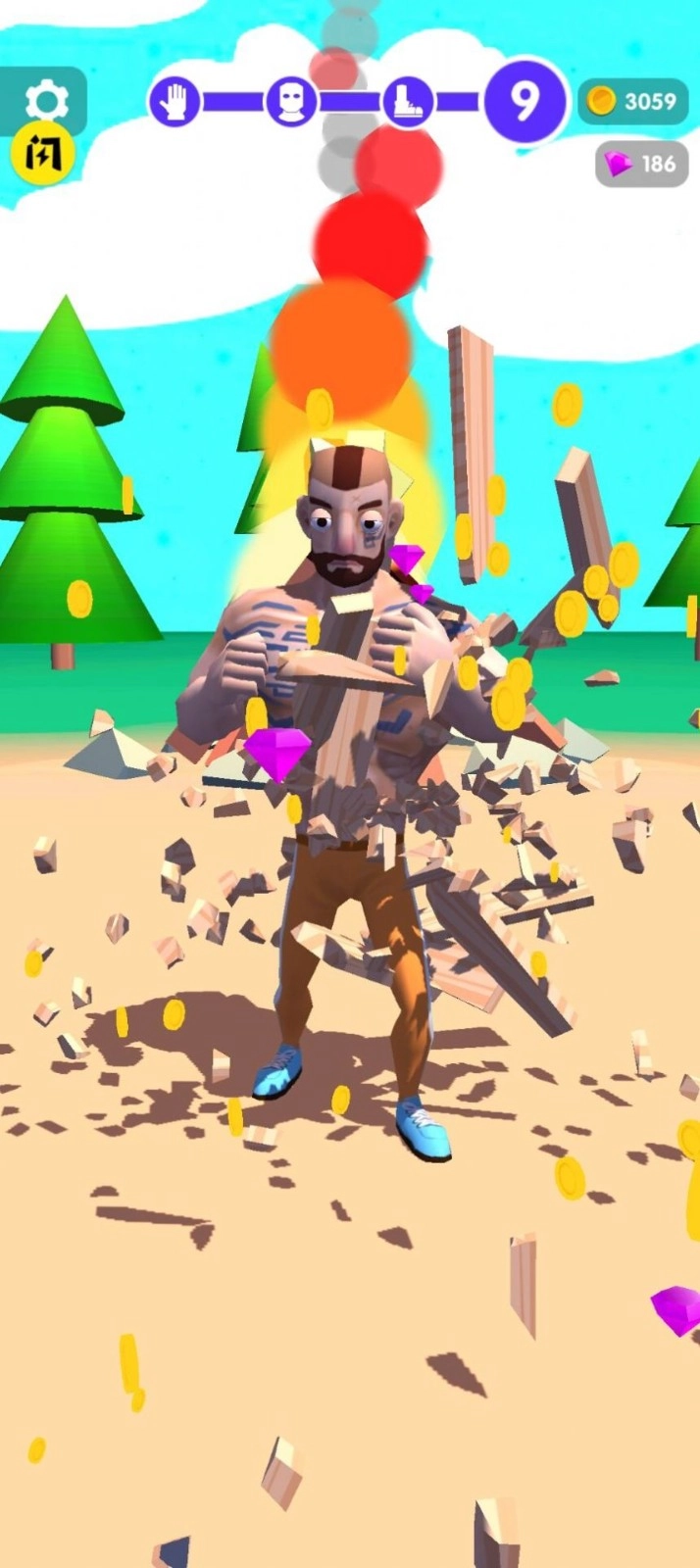 3、不断地挑战联系徒手劈开柴火,解锁全新自由的道具材料。