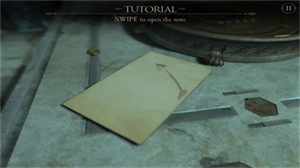2、按照箭头指示滑出信件,展开信件查看其中内容,获取关键信息;