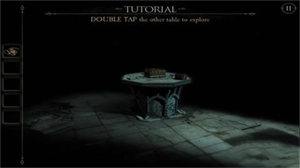 1、场景始于昏暗屋子与诡异方形桌子,先拉近视角,仔细观察桌子上的物品;