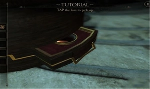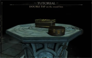8、把眼镜完整组装好并戴上,对准圆盒子的盖子观察,会看到红色的指纹;点击指纹所在的位置,再将手按在红色指纹上,中间的小圆块就会打开,从中获得六边形铜片;
