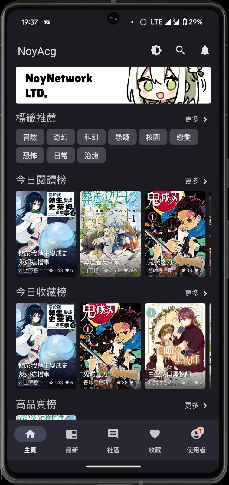 noyacg 漫画最新版是特别好⽤的免费漫画软件,更新后体验更顺了。里面漫画资源特别全,国漫、日漫、韩漫都有,热门新作和经典老漫天天更新,还都是高清画质。加载速度变快了,没广告打扰,能批量下载离线看。界面简化后更好操作,能自定义翻页方式和背景亮度,还会根据你看过的内容推荐喜欢的漫画,追漫特别省心。