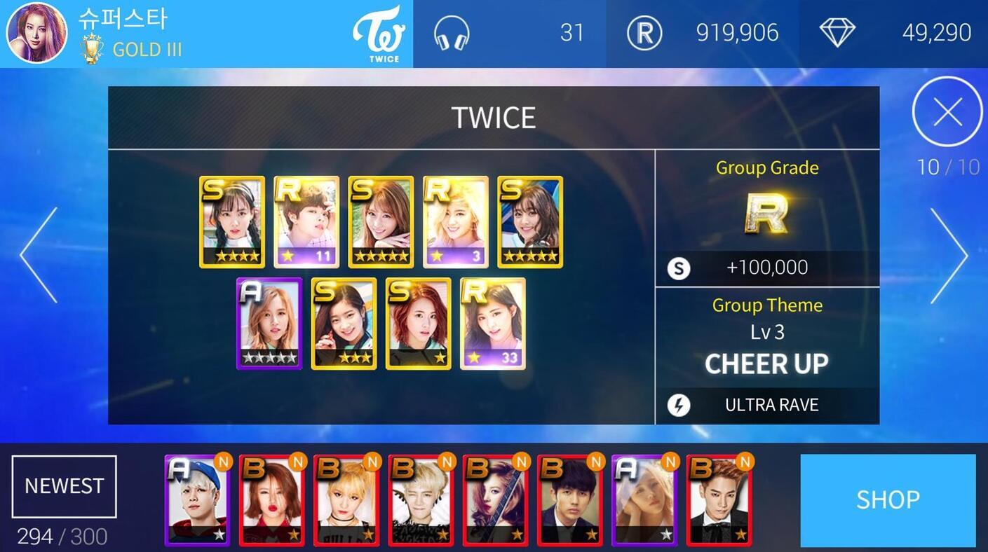 韩服全民天团是一款人气火爆的音乐养成类游戏,收录了海量韩流金曲,画面精致炫酷,音乐节奏动感十足,更有众多设计精美的偶像卡牌让人赏心悦目。在这里,你能与EXO、少女时代、Super junior、东方神起等16组顶级明星天团展开零距离的亲密互动!通过收集明星卡片,16个天团组合的高清卡牌将充分满足你的收集欲,还有各种神秘造型等你来解锁探索!
