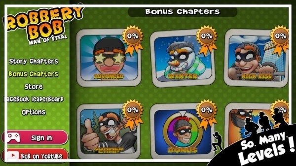 神偷鲍勃最新版是一款可以成为小偷自由冒险闯关的游戏,这款游戏玩家们可以不断的洗劫富豪的家,快速的隐藏自己的身影,灵活的操作让自己的身手更加的敏捷,喜欢这款游戏的玩家快来下载吧!