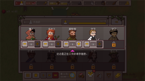 9、在幸存者界面,可以为他们分配工作,点击头像可查看详细信息。