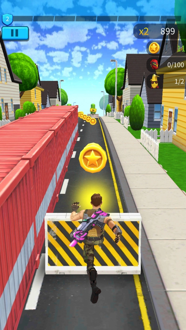 这是一款射击跑酷类游戏,玩家在游戏中需要一边高速奔跑移动,一边利用武器射击沿途的各类障碍,摧毁所有目标,同时避开障碍物以赢得胜利。