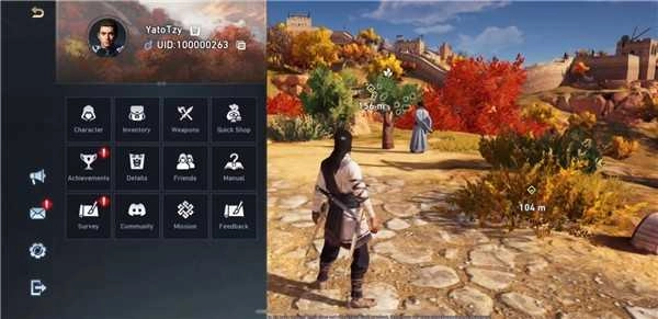 1、首先进入游戏从左上角可以调出界面菜单,菜单功能包括背包、武器、成就、角色、邮件、设置等等,几乎所有的功能都涵盖了