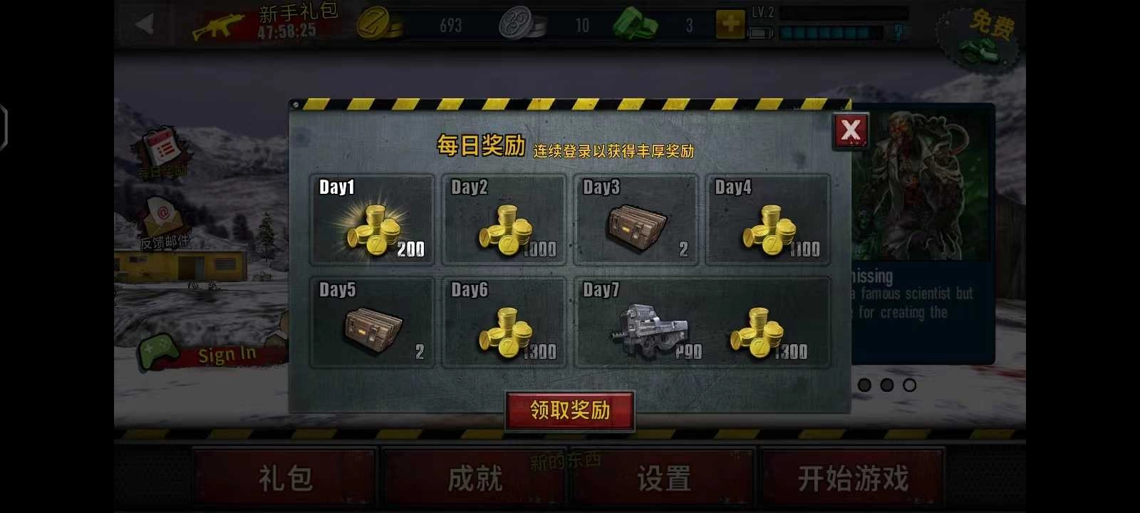 1、在主页中,玩家可以点击左边的【每日奖励】获得大量的金币,连续登录游戏奖励更加丰厚哦~