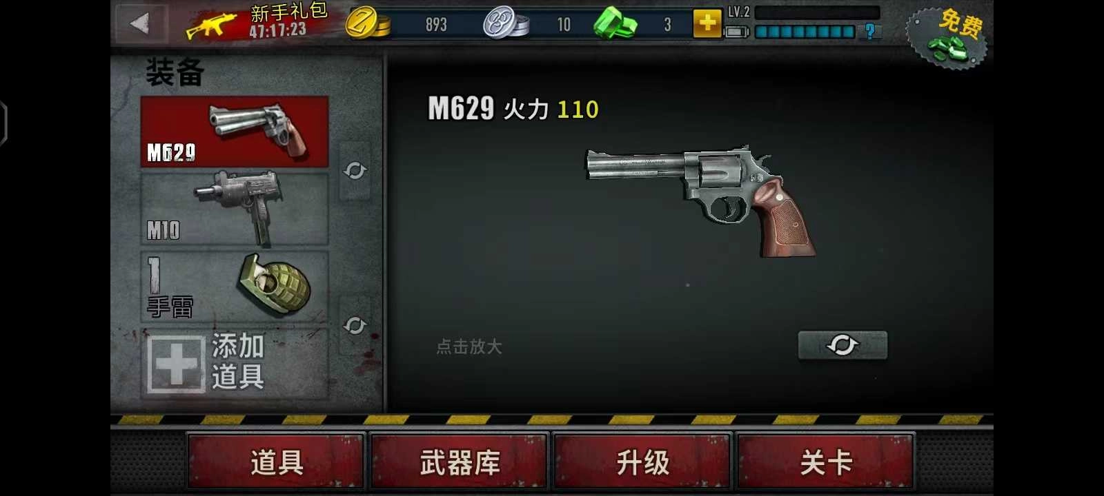 2、然后点击【开始游戏】,接下来玩家可以选择自己的武器,之后点击【关卡】;