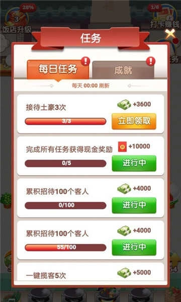 2.当玩家的餐厅发展到一定规模后,就能快速获取红包,轻松赚取零花钱。