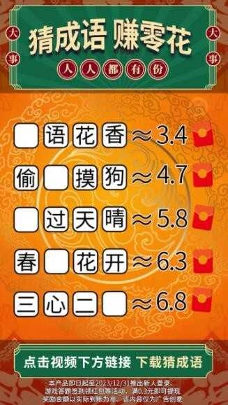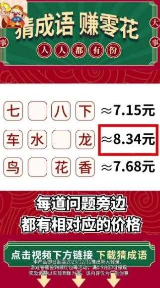 猜对一个成语≈0.3元,3毛就能提现,不赚白不赚!