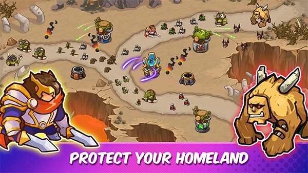 防御之王高级版的玩法和经典保卫萝卜塔防游戏基本一致,玩家只要在敌人行进的路径上建造类似炮塔的防御塔就行,不过它和保卫萝卜又有很大区别——在融入角色RPG养成玩法的同时,还新增了多张地图与上百个关卡,能最大限度激发玩家的挑战欲。