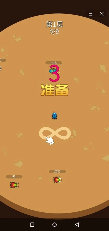 2、控制虫虫推动大球去撞击其他小虫子,只要把它们撞出竞技场就算获胜。