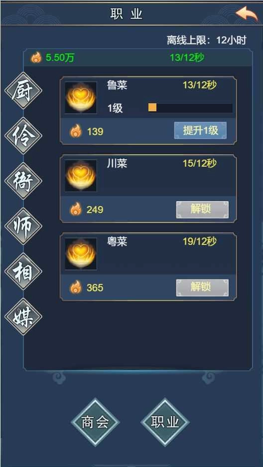 友情提醒:挂机商会等级和职业技能等级,在初期加成不高,但是努力提升上去之后,你就会发现可以尽情躺在家里赚取大量高额受益。