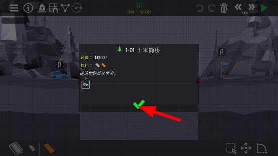 6、然后就是选择这里的材料来搭建你的桥即可但是要记得材料是有限的。