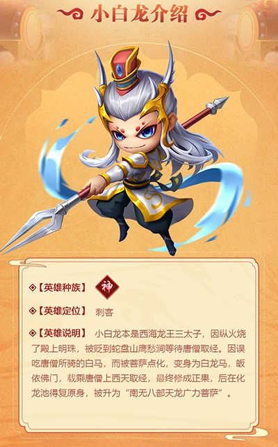 龙形态下小白龙拥有两个技能,用大招可变身为人形态。人形态下小白龙的输出更高,除了两个小技能以外,还能获得第四个技能蛟龙出海。蛟龙出海小白龙可召唤龙魂对目标造成高额的伤害的同时击飞目标。