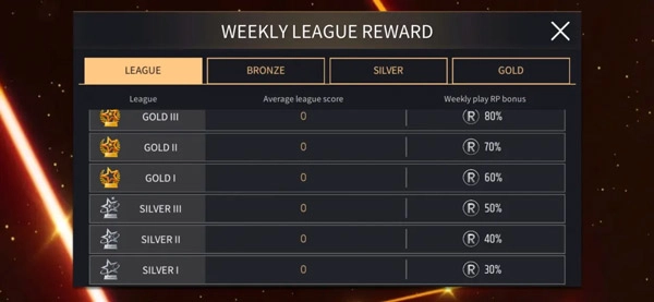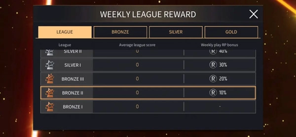 根据联赛的排名,可获取额外奖励!