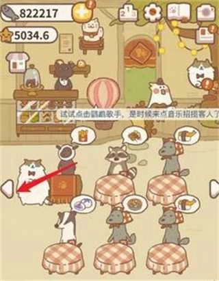 用获得的小鱼干和星星来购买餐厅设施,餐厅设施越多来的客人就会越多;