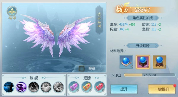 上仙们可借助翅膀精华提升翅膀等级,以此增强自身的生存能力。当翅膀等级分别达到91级、191级、291级与341级时,还能解锁强力的辅助技能,助力上仙们更轻松地击败对手。