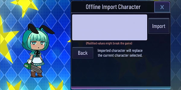点那个“import”可显示人设,“Back”是清除已输入的代码。