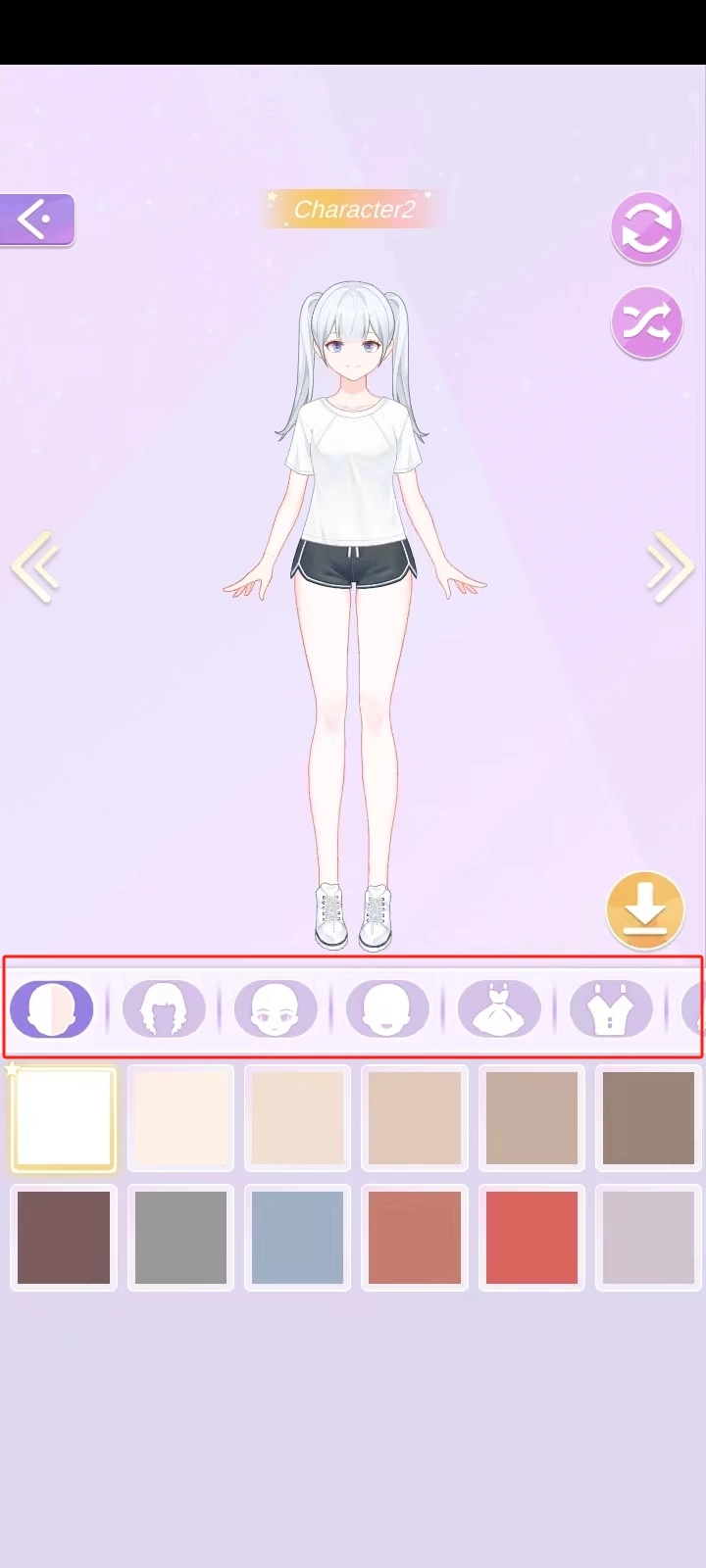 2、进入装扮界面后,玩家能够对角色的肤色、发型、眼睛、嘴巴、服装、鞋子、发饰等进行设置,这里提供了丰富多样的选项,玩家可以依据自己的喜好来搭配组合;因为当前版本不含广告,所以玩家不需要观看广告就能获取相应物品。