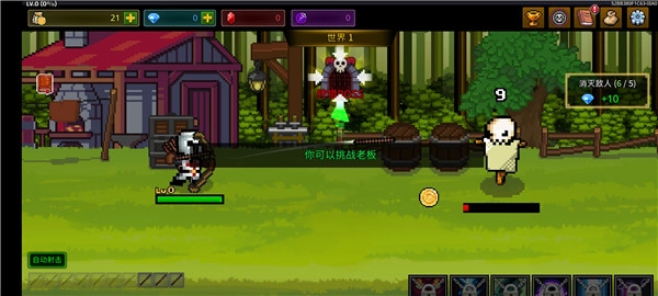 2、角色会自动射击,消灭它们;