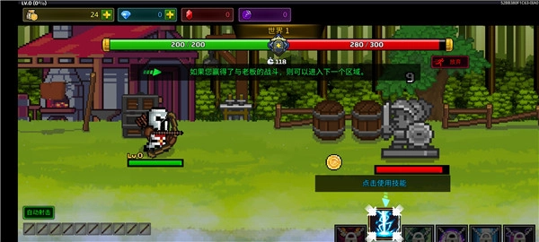 3、可以一指操作,通过虚拟手柄控制弓箭手挑战各种关卡;
