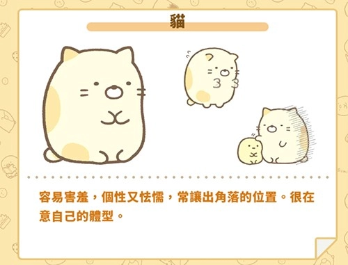 Neko性格害羞胆小,又有些怯懦,常常躲在角落里,还特别在意自己的身材体型。