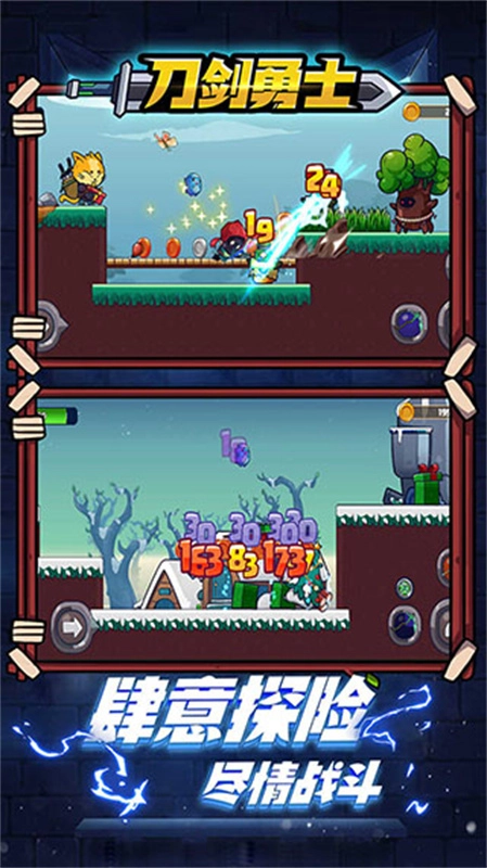 《刀剑勇士》中文版是一款以闯关冒险为核心的游戏。在游戏里,你将化身为一位Q萌可爱的角色,通过与各种造型同样软萌的怪物展开激烈战斗,来获取经验值和金币,进而解锁不同类型的武器与勇者角色。此外,游戏中还有宠物孵化系统——你可以培育专属于自己的小宠物,让这些小可爱成为你冒险路上的得力助手,陪你一同闯关。细腻精致的游戏场景搭配轻松有趣的玩法,能让你沉浸式地享受冒险乐趣。感兴趣的小伙伴,快来《刀剑勇士》开启你的冒险之旅吧!