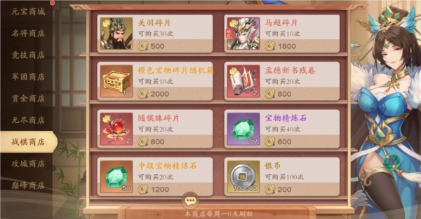 战棋商店可兑换金将“关羽”,参与远塔防自走棋玩法获得战棋币;