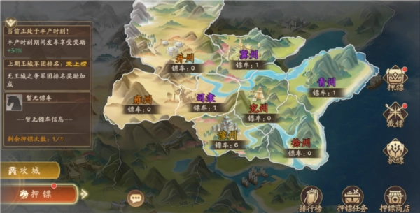 ✦召唤师可点击州郡地块或截镖按钮查看可截镖车信息,每辆车的可被截标次数有限,劫镖成功后才会扣除该次数。