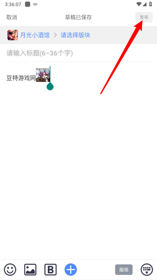 4、进入页面后,填写好标题与内容,点击右上角的“发布”按钮就能完成操作了。