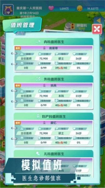 玩家可以雇佣不同技能和特长的医生和护士,在管理医院的过程中体验不同的职业角色。