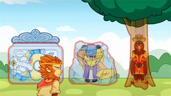 3.你需要帮助悟空的四位弟子避开妖精,可通过点击人物来切换他们的不同形态。