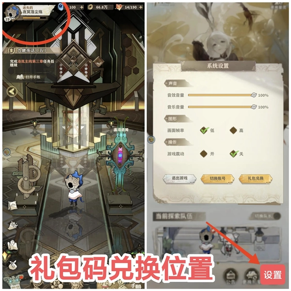 3、兑换码位置在左上角游戏名称进去设置(目前还没有放出兑换码)
