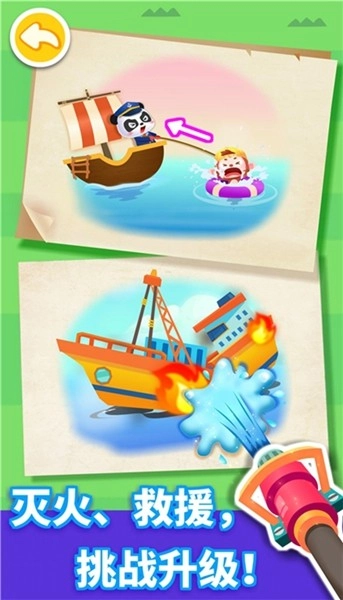 小伙伴们掉进水里啦,宝宝能帮到它们吗?扔出救生圈,就能把它们救起来哦。瞧,有船只着火了,赶紧用消防泡沫把大火扑灭吧。人鱼公主被困住了,宝宝变成小骑士,剪开海草、打开铁锁,救出公主啦,宝宝真厉害!