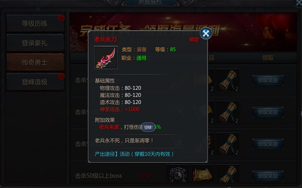 开服≥60天,转生≥3转,等级≥100级