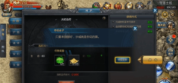 直接提升人物的生命值上限,不管是什么职业,这个系统都得优先升级,血符系统对血量的加成很显著,对应的碎片获取途径也不少。身为战士,只要身上装备齐全,就足以和boss较量一番,多刷些野外boss,多参与暴君降临活动,你会发现战士的血量能轻松突破一万。
