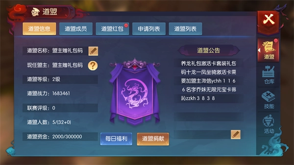 帮派是游戏社交的核心,也是获取资源的重要途径。加入帮派后,玩家可以参与帮派任务、帮派副本和帮派战等活动。其中,帮派任务会奖励帮贡,帮贡可用于兑换珍稀道具与装备;帮派副本能产出专属资源,助力提升帮派成员的整体实力;而帮派战若取得胜利,还能获得丰厚的荣誉以及领地资源。
