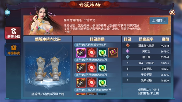 与坐骑榜类似,冲榜特卖前五项道具清空,获取魂魄优先级高,提前冲榜同阶先升阶排名靠前。