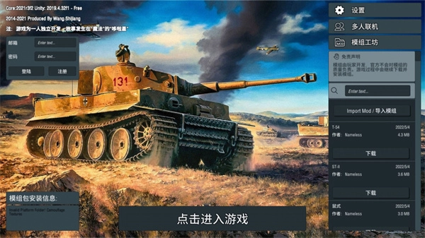 模组:可免费由玩家制作的坦克与地图,注意:玩家制作的模组在平衡性上有一定问题;