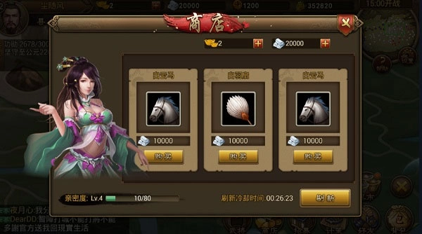 如果对朕的江山商店的物品不满,可进行刷新,每刷新1次,冷却时间增加30分钟。刷新次数越多,和小玉的亲密度越高,则获得心仪物品的机会越高。