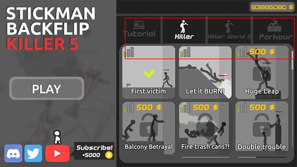 2、提升你的装备与跑酷技巧,购置武器,成为全球顶尖的火柴人,闯过酷炫的跑酷关卡,还可以试试杀手模式来消灭你的对手。
