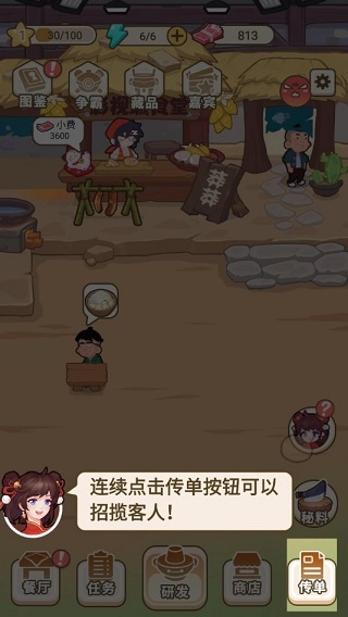 现在的餐馆人气不旺,为了尽快的增长财富,派人去发发传单可以招揽更多的顾客哟~