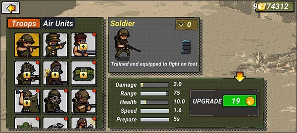 7、还能解锁多种多样的兵种,让你的排兵布阵有更多选择,还可以对每个兵种进行升级,提升他们的作战能力。