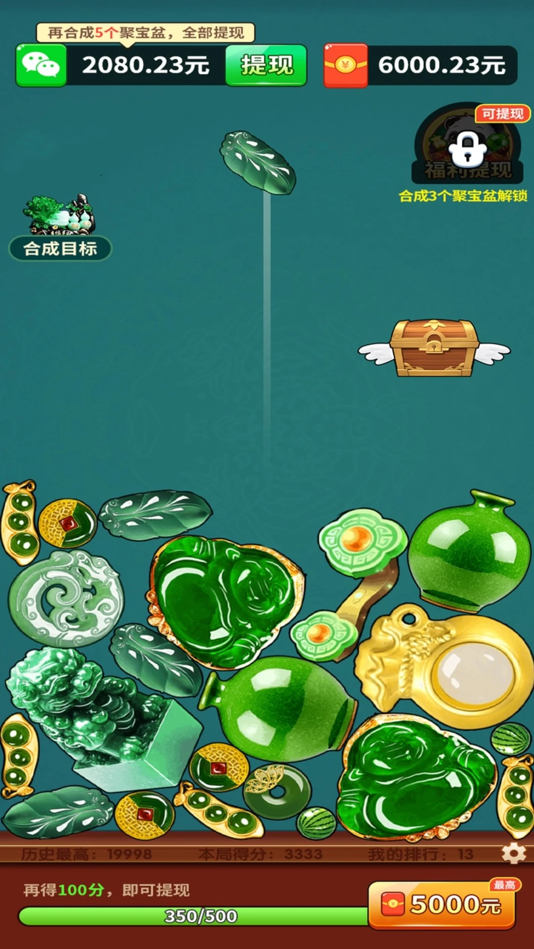 1. 合成各类不同的财宝,可获得对应的不同积分,当积分累积到指定要求时,就能领取大额红包奖励。